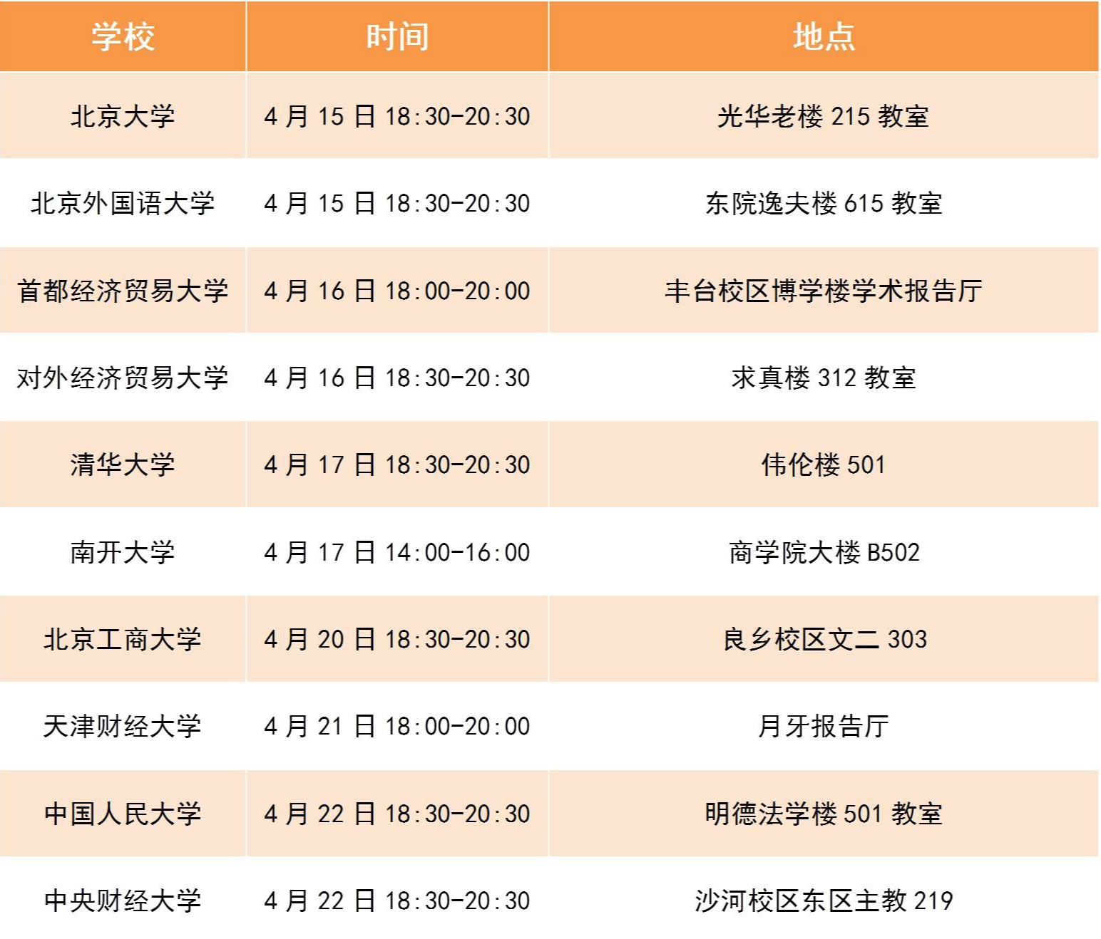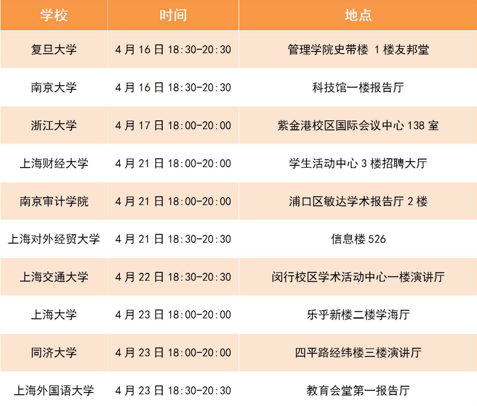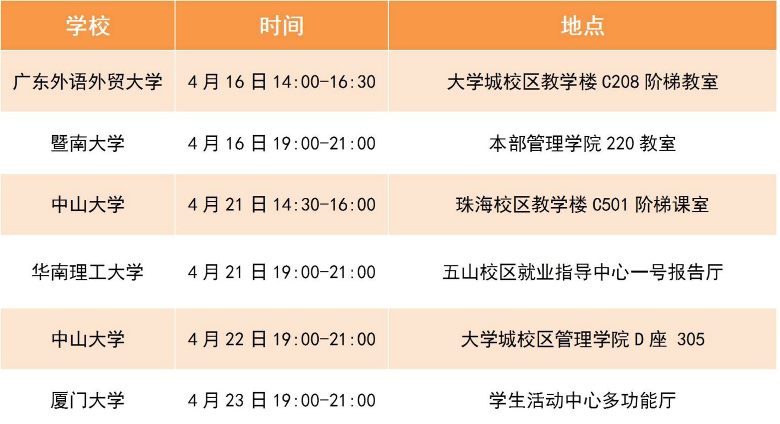 “直面大咖”校园宣讲会日程一览: