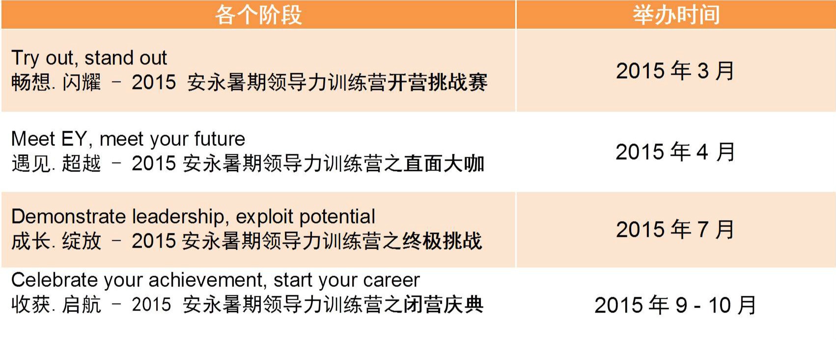 2015安永暑期领导力训练营日程一览: