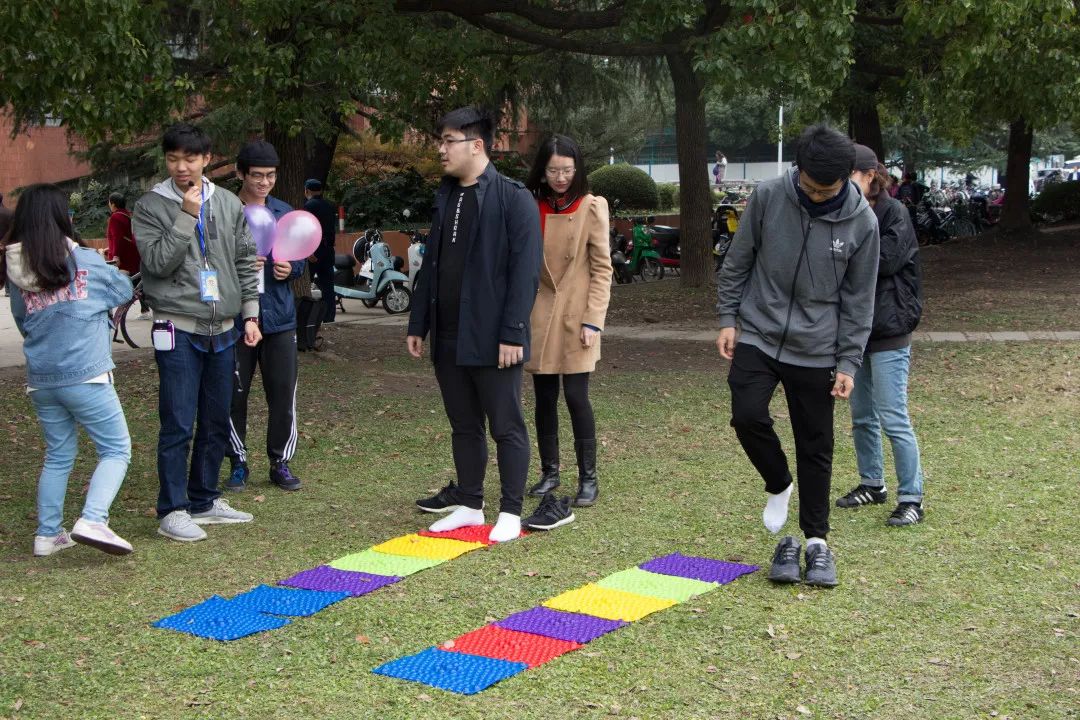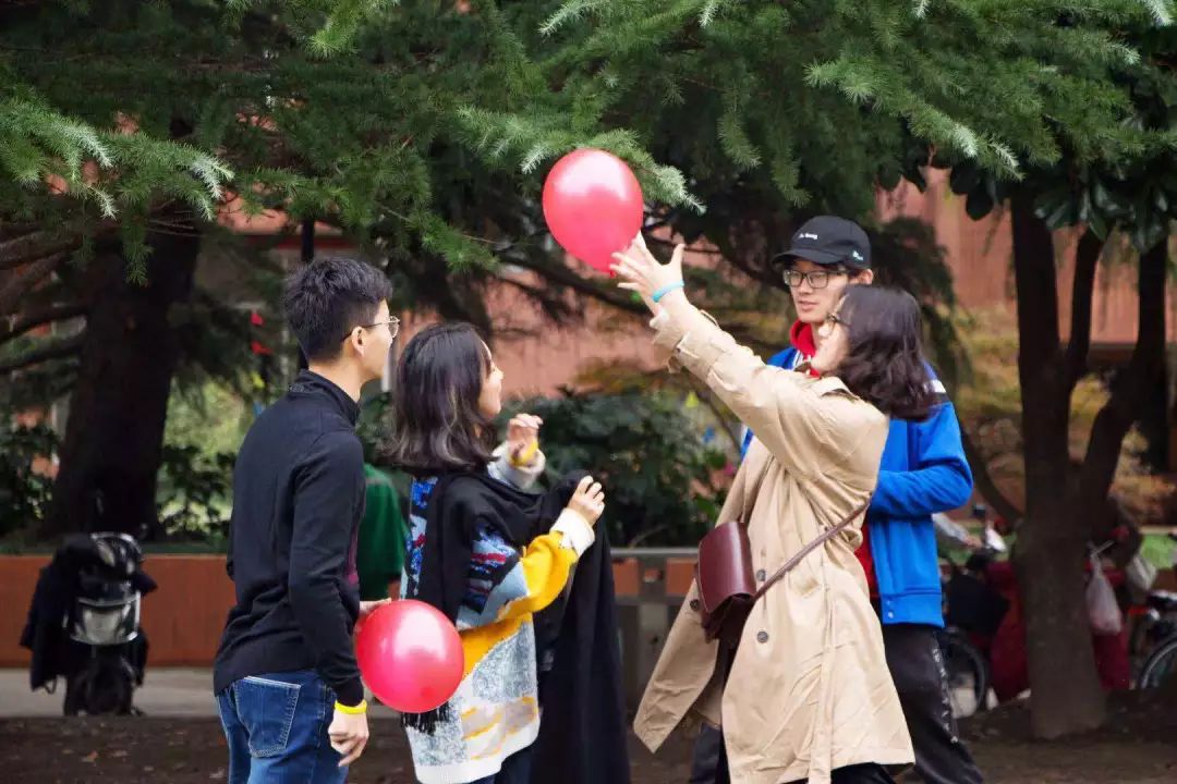小心翼翼地夹着气球