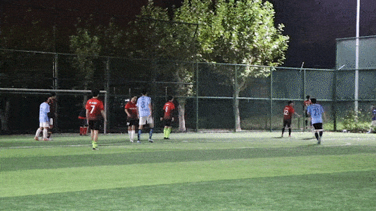 英院依旧保持着上半场的攻势,向边路频频发起进攻,好在李昊多次卡住位置将球安全解围,确保城门不失。张博涵作为后卫线上的前辈,也是耐心在后场组织梳理,可谓节拍器。下半场中段时,英院抓住了一次我方后场失误,对方7号球员将球推射入网,英院2比0领先。