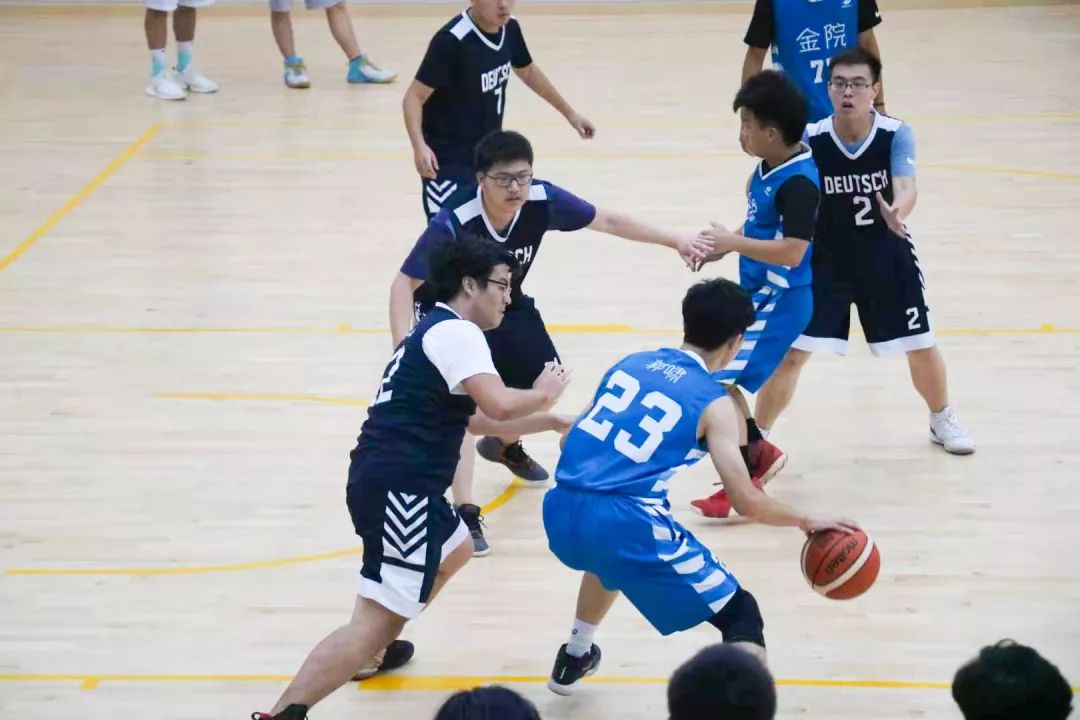 德语率先跳到球权。郭啸罚球线接到球虚晃一下,造成犯规,两罚一中,金院率先得分。德语抢到进攻篮板,篮下投篮,被聂阳大帽扇飞。紧接着郭啸上线策应传球给到郑永旭,郑永旭篮下顶开防守人霸气两分打进。又是郑永旭,内切上篮轻松再拿两分。德语命中两记中投紧咬比分,郭啸抢到后场篮板,犹如詹姆斯附体一般,一条龙硬抗3人防守上篮造成犯规,两罚一中,又是郭啸连续抢断德语球权,快攻+助攻帮助金院连续得分。金院内线优势明显,聂阳篮下连续抢到进攻篮板,造成犯规。随着德语快攻不进,第一节结束,金院10:4稍稍领先。