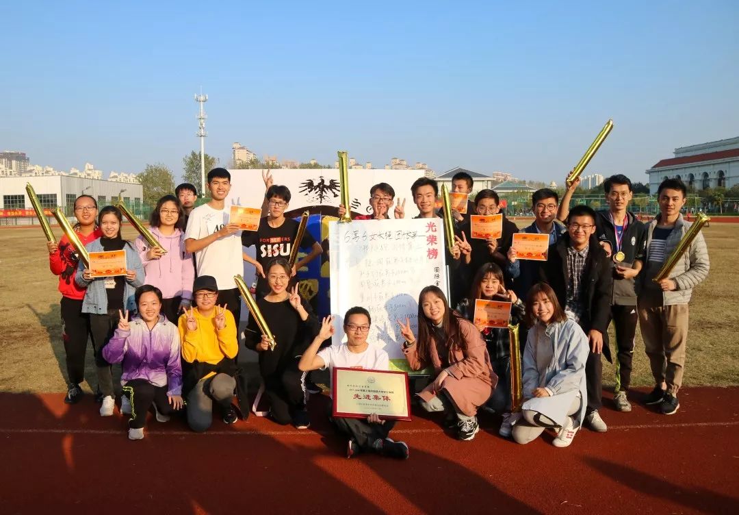 体育部各成员齐心协力,协调合作,夺得了绑腿跑团体赛季军。