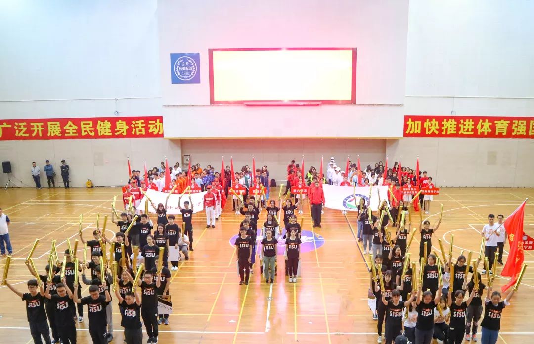 由于天气原因,开幕式场地有所变更,但丝毫不影响同学们的热情。方阵队伍气势如虹,早早到来的观众们为他们喝彩。