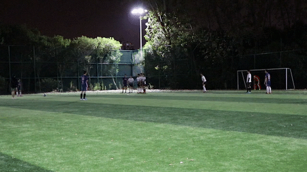第17分钟,金院中场被对方抢断,在对方快速反击之时,金院路易斯李昊飞身将球铲出边线,迫使对方重新组织进攻。5分钟后,我方获得前场任意球机会,谢际炜的圆月弯刀力道十足,可惜角度过正,再次被对方扑出。