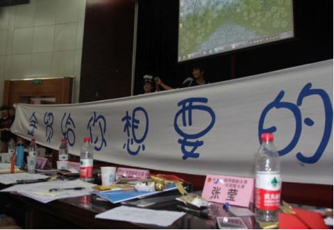 在十四个院系团学联分别进行了展示和答辩后,校团委书记朱鸣华老师上台致辞。他表达了对各院系学生会积极配合和支持校学联的感谢,朱老师还强调了“大爱”——我们都是上外人,而“上外合伙人”所致的青春终将不会逝去,只会经久流长。