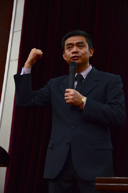 晚上18:30,活动在图文西厅正式开始,在同学们的热烈欢迎和两位礼仪的指引下,国际金融贸易学院院长章玉贵老师走上讲台开始了以“收入分配改革开启经济增长新周期”为主题的演讲。虽然章玉贵院长一天的事务十分繁忙,但他一直站着给同学们认真地做了约一个小时的演讲,赢得了同学们发自内心的尊敬和一阵阵热烈的掌声。