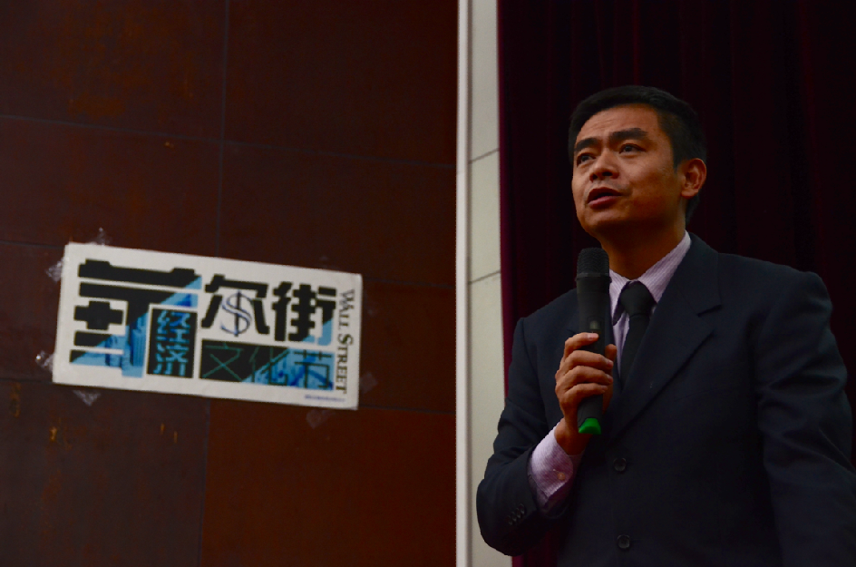 章玉贵院长有条不紊地给同学们讲述了我国经济增长奇迹或将成历史、既有增长模式不可持续、“中等收入陷阱”是难越鸿沟,最后还探讨了下一个增长周期靠什么,并表示了他对于中国全面建设小康社会的坚定信心。章玉贵院长的演讲既犀利、深刻又风趣幽默,观众席里不时传出阵阵掌声与笑声。在接下来的现场提问环节,同学们积极举手提问,章玉贵院长也都一一耐心地做了回答,现场气氛十分热烈。最后,主持人带领我们一起回顾了华尔街经济文化节的各项活动,并宣布华尔街经济文化街圆满闭幕。