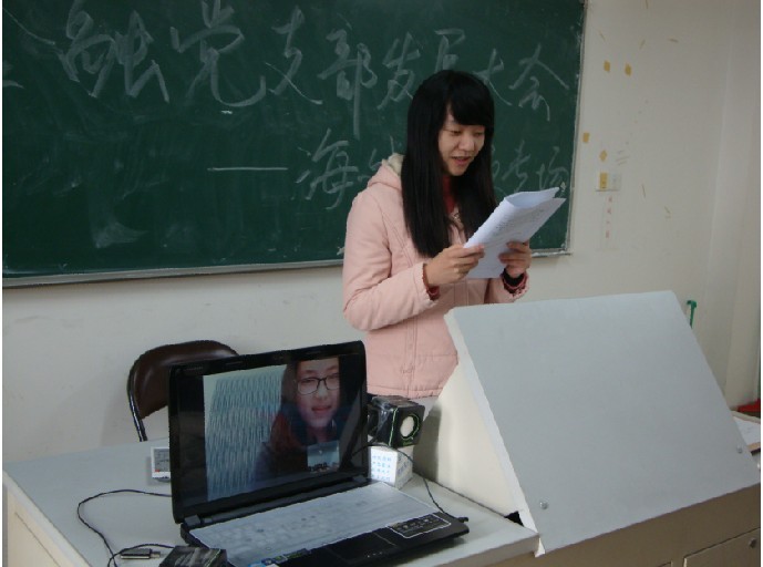 程艺涟同志经过组织的选拔和各级推优,经党校学习和组织考察,获得了发展成为中共预备党员的机会,但是,参与学校的海外深造项目让她不能回到学校参加发展大会。令我们欣慰的是,程艺涟同学对于党组织的向往非常强烈,在她本人的争取和组织部的批准下,我们决定克服时差以及前期越洋寄送材料等困难,利用网络通讯设备,进行视频同步连线发展。支部的同学对这一全新的尝试也感到很新奇。支部全体同学通力配合,帮助排除技术困难,保障了发展会议顺利、有序的进行。这次会议此次支部会议由09级金融党支部支部书记王维茂主持,与会党员一致同意发展程艺涟同学成为中共预备党员。