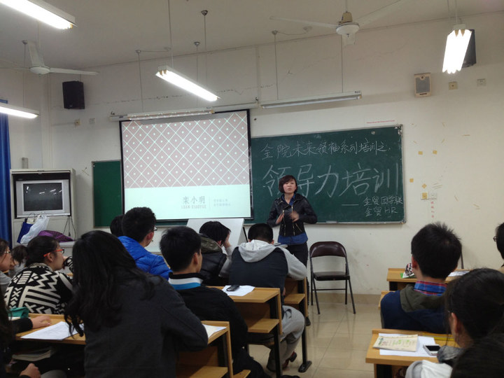 2013年4月9日晚上6时,由国际金融贸易学院人力部主办的未来领袖培训于2401教室顺利举行。本次活动将延续上学期领导力培训的初衷,由栾小玥主席、胡凯琳副主席主讲,旨在引导大学生重视对自身领导力的培养,通过给他们提供一些方法和建议,为将来发展创造一个更好的平台。活动在筹划及报名期间得到了同学们的积极响应,现场参与培训的人员也积极提问,认真悉听,使活动达到了满意的效果。