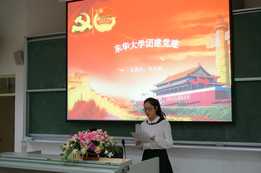 在紧接着的松江各校党建团建活动展示环节,主持人率先介绍了活动主办方上外金贸学院组织建设部一学期来的党建团建活动,其一大特色与看点便是将党组织接班人的培养与志愿者活动融为一体,通过鼓励入党积极分子和学生党员积极参加两项智力助残志愿者活动—“送教上门”与“市南支教”来培养党组织接班人友爱奉献的精神,同时引领带动更多的同学加入为社会服务的志愿者队伍。