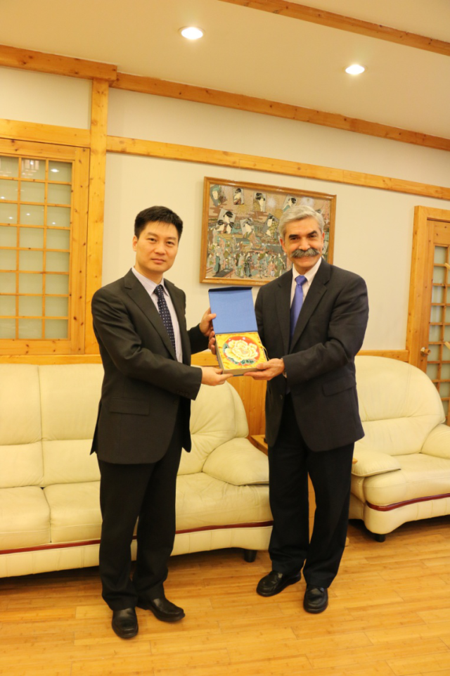 Jaime Alonso Gómez教授和Denis Dimon博士感谢上外的热情接待。他们分别介绍了圣地亚哥大学和该校商学院的发展情况,以及国际化办学的现状,表示非常愿意通过学生交换、教师互访、联合培养、合作科研等形式推进两校之间更深层次的合作。