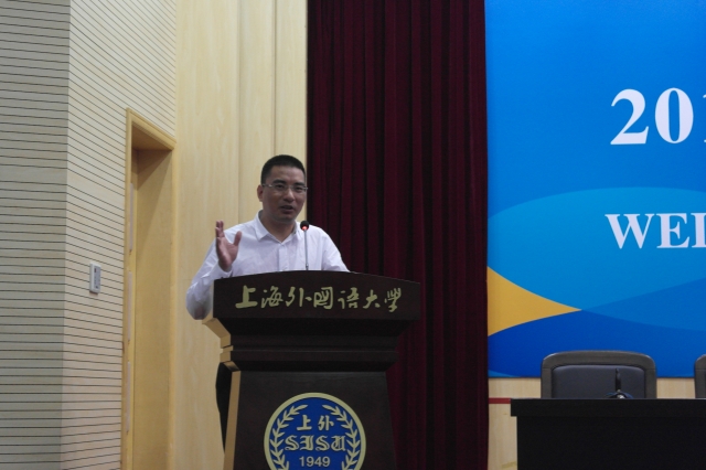 上海外国语大学国际金融贸易学院院长章玉贵教授发表了题为《悦己,悦金融》的致辞。首先,他对2016级金融专业硕士研究生的到来表示热烈欢迎。章院长在致辞中提出要关注学生的个性化发展,作为上外的学生不需要通过张扬自己来博眼球关注。随后,章院长还对世界金融秩序进行点评,对中国在世界的地位充满期待。同时,他还强调在今天这样一个不确定性的世界里学习金融尤其要掌握金融规则,需要付出艰辛探索与行为实践;其中的奥妙与可能带来的快乐与苦痛,只有深度浸润,才能体会。希望同学们可以做到悦己然后悦金融。