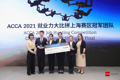 在2021年ACCA全国就业力大比拼(Job Hunting Competition,JHC)中,ACCA项目班学生宗萌萌、李祺丰、李蕙妍、汪振亭等组成的SISU Voyagers队先后斩获了上海市决赛和上海赛区决赛的冠军,并代表上海赛区参加了全国总决赛。同时,宗萌萌同学获得“最佳个人”奖。